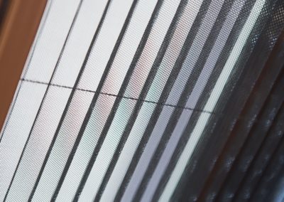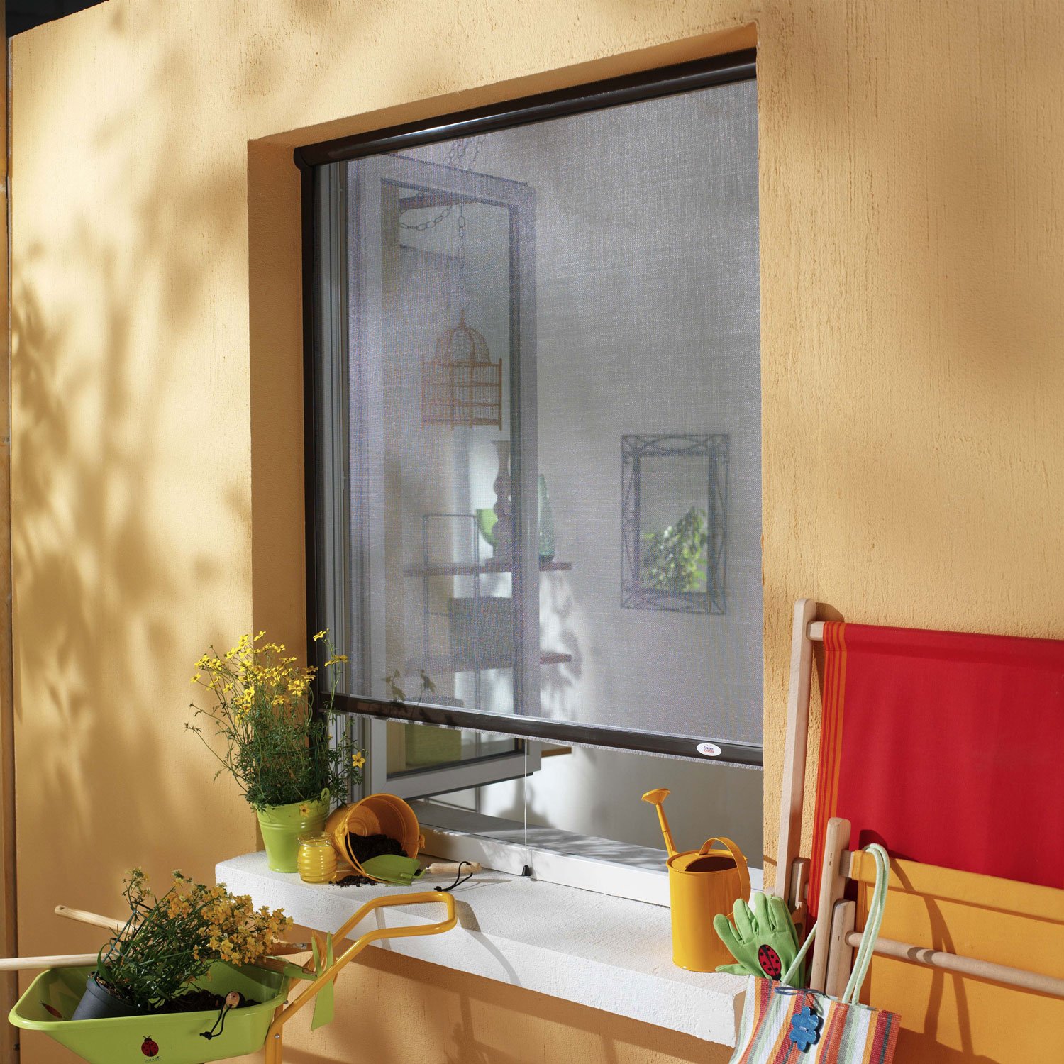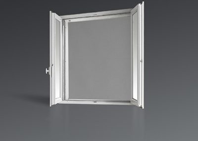 - Sa toile en fibre de verre enduite de PVC peut être remplacée par une toile en fil d’acier ou une toile anti-pollen pour accroître sa résistance au vent, aux griffes des animaux domestiques et aux allergènes.